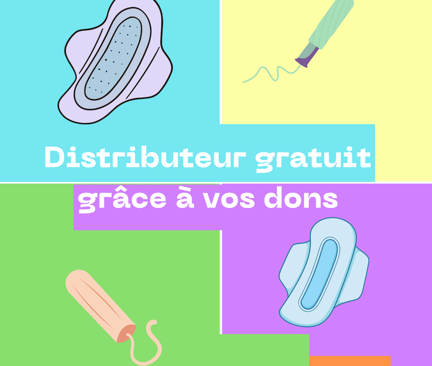 Depuis quelques mois, l’association 3 Regards est fière de disposer de distributeurs de protections périodiques en libre service, installés dans les bâtiments de l’association.