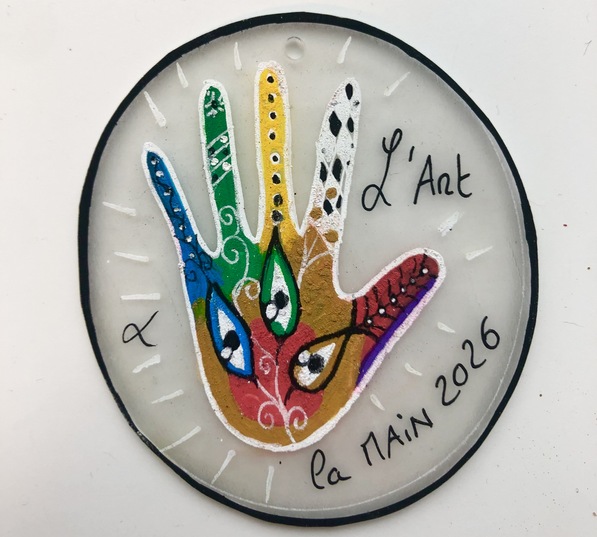Travail autour du logo du festival 2026 en plastique fou : dessin et coloriage sur plastique fou, cuisson au four. Création de portes clé de l’art et la main 2026